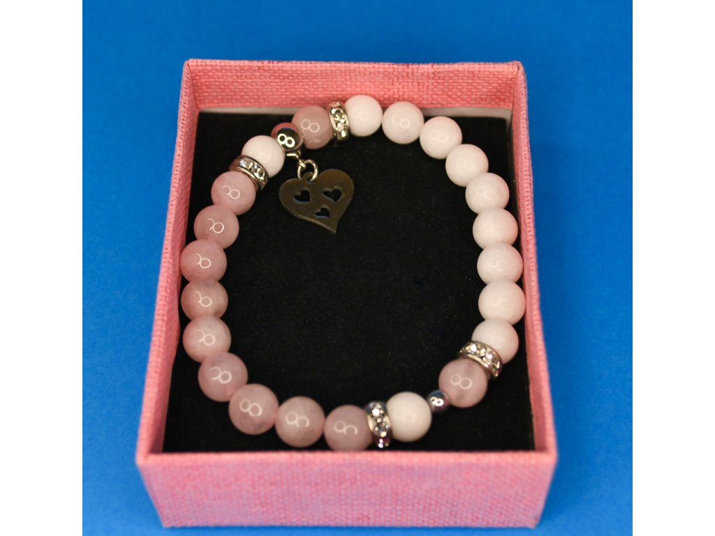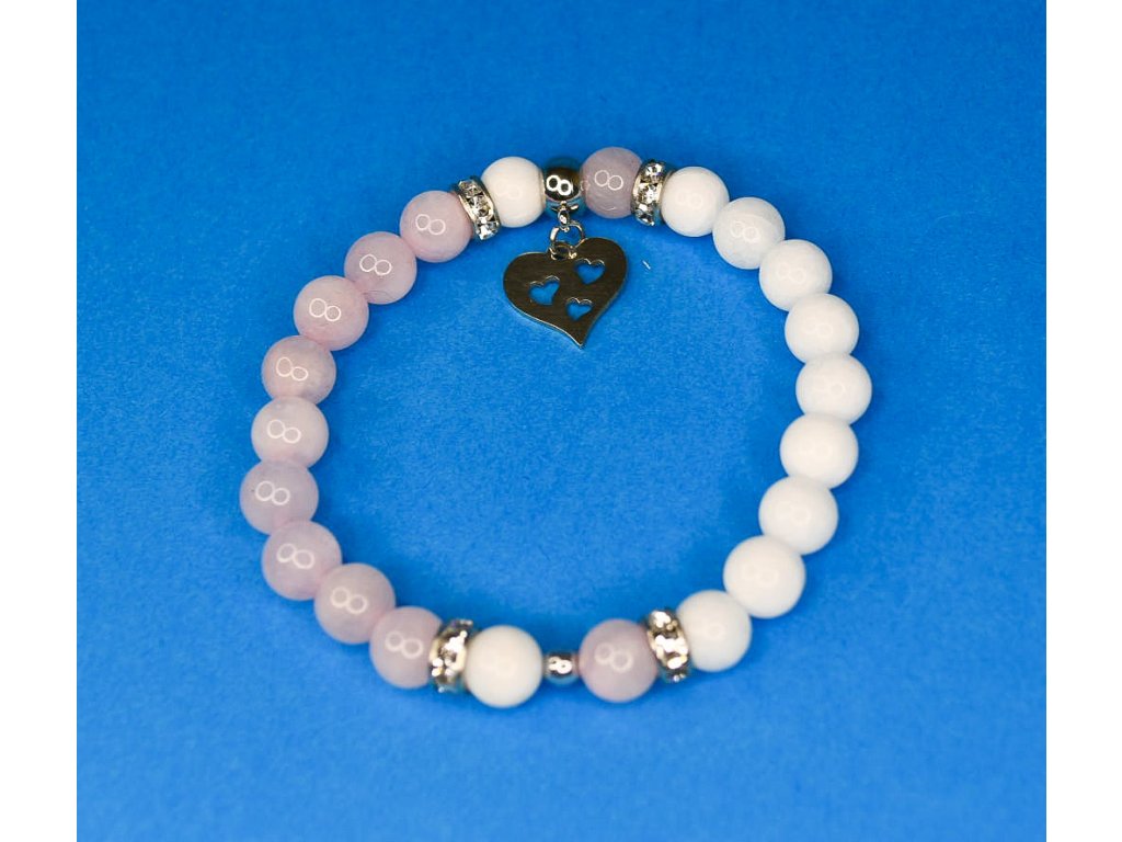 Náramek s jadeitem, křišťálem a srdíčkem z chirurgické oceli