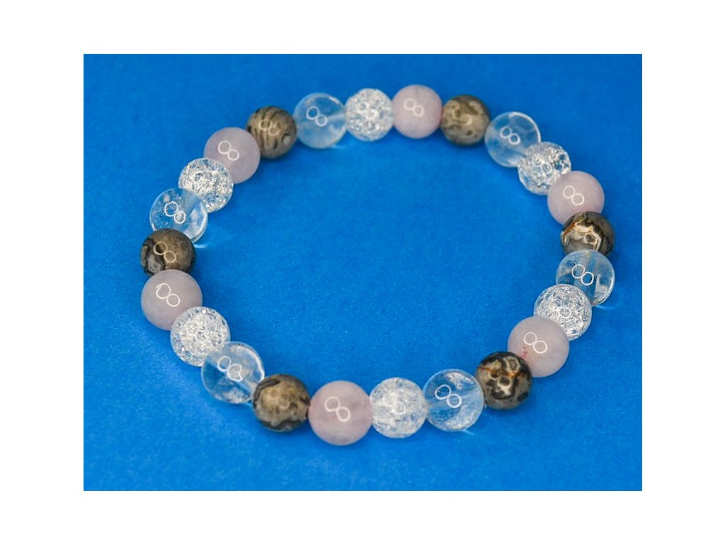 Náramek s ruženínem, šedým jaspisem a křišťálem větší korálky