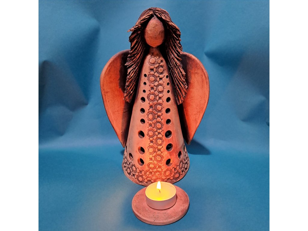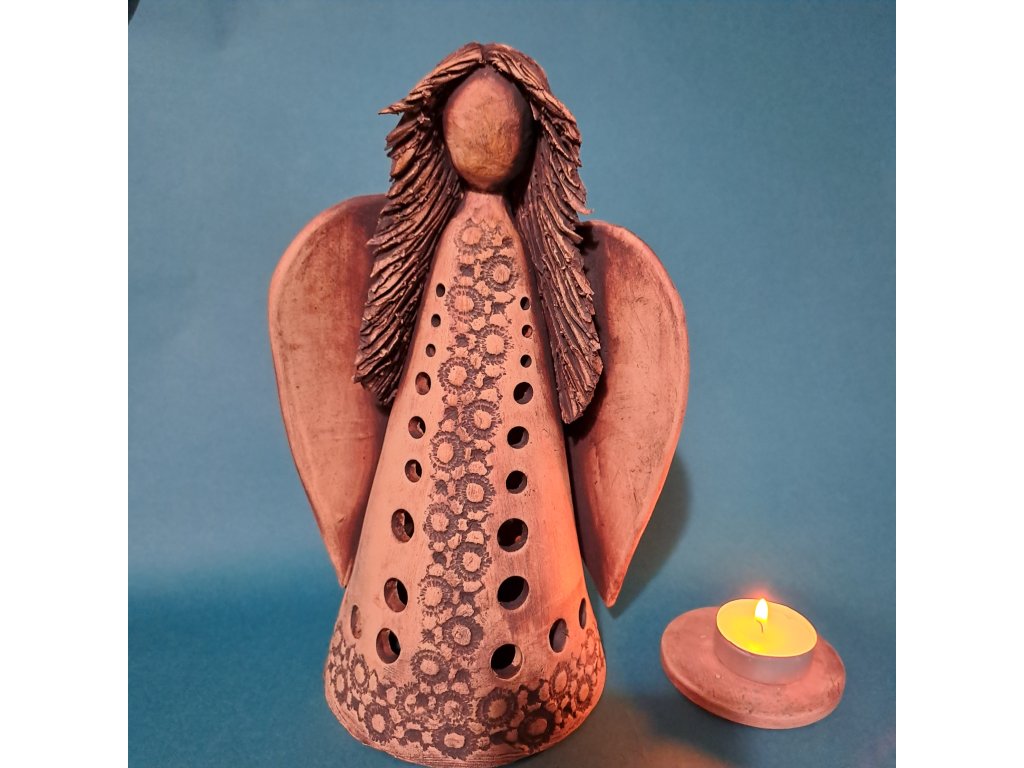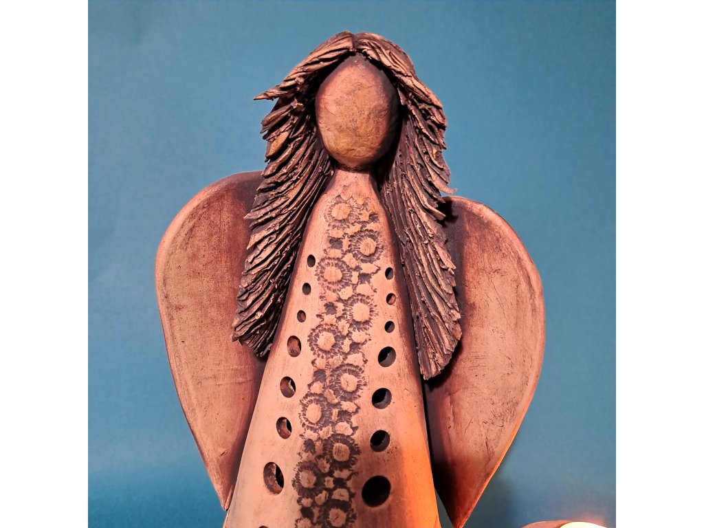 Originální Andělka k nám dorazila z Karlových Varů. Jediněčná ruční práce z keramické hlíny, stabilní v postoji.