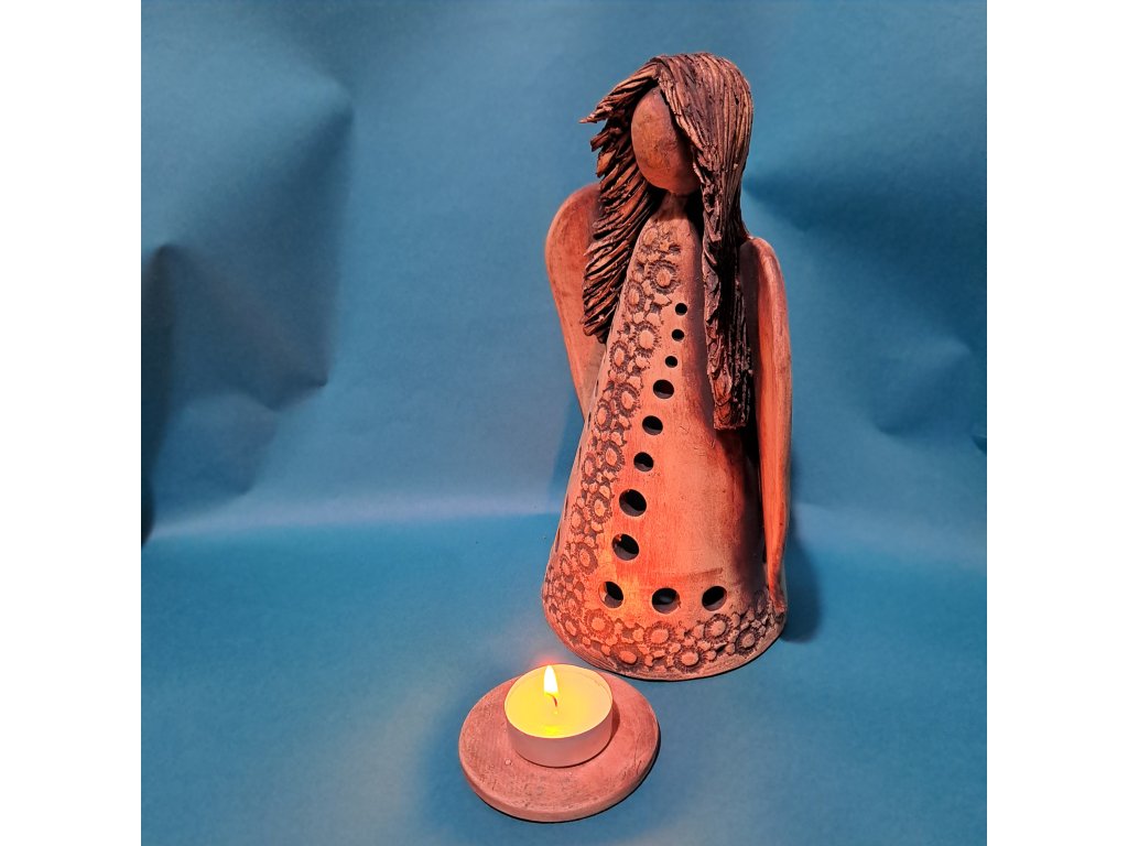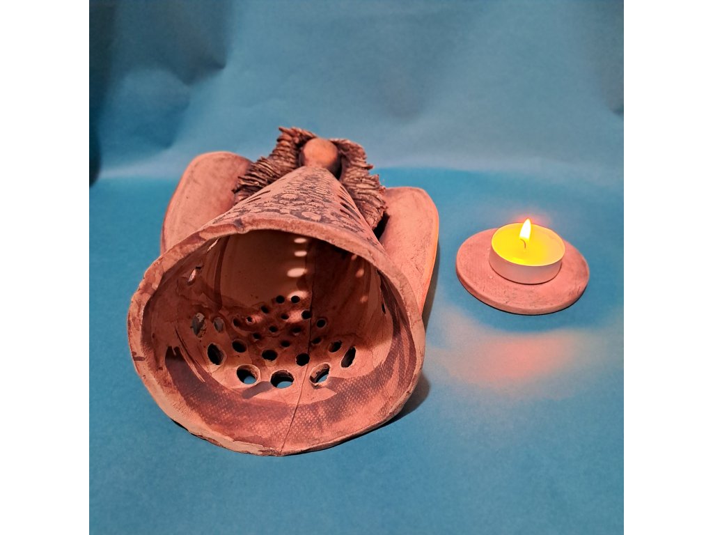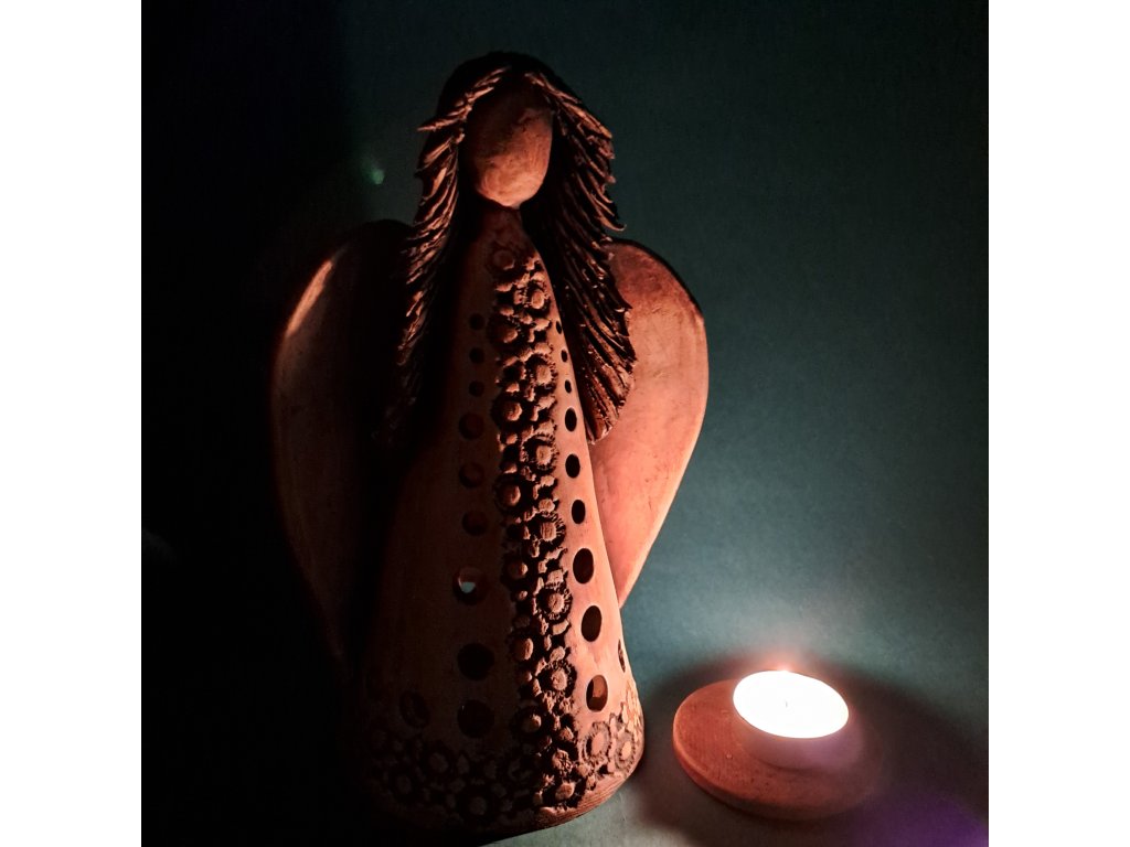 Součástí Andělky je keramický podstavec pod čajovou svíčku, lze ji tedy použít jako svícen k večernímu rozjímání.