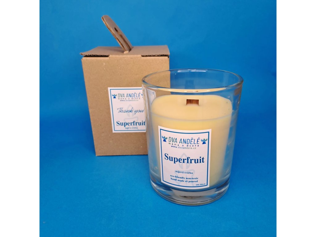 Vonná svíčka je ve skle, ručně vyráběná v České republice s dřevěným knotem. Nákupem podpoříte českého výrobce.